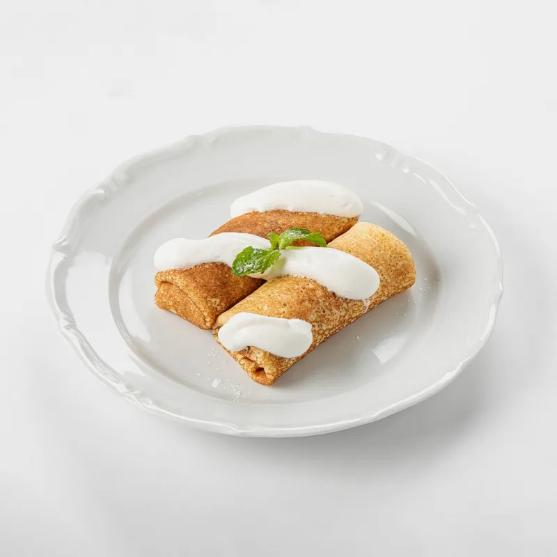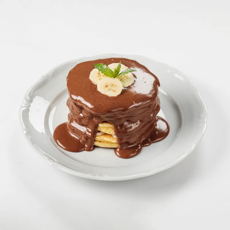 Американские блинчики с двумя соусами: шоколадным и сливочным