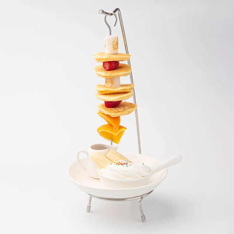 Башня счастья из панкейков, фруктов, шоколада, взбитых сливок и маршмеллоу