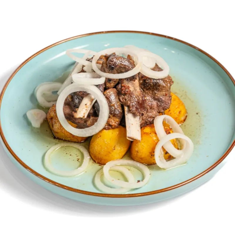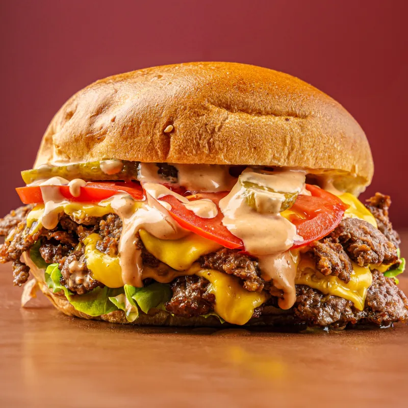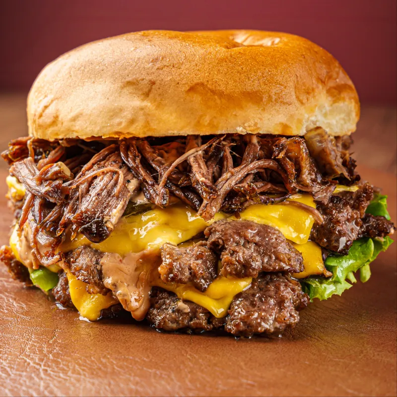 Сочный бургер с томленной говядиной и фирменным соусом + фри