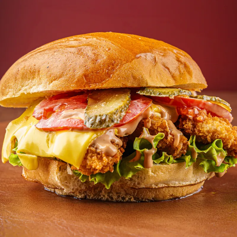 Бургер с хрустящими куриными стрипсами и фирменным соусом + фри