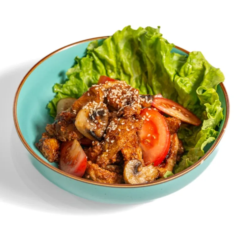 Фирменый соус, сыр Моцарелла, грибы шампиньоны, Куриный рулет