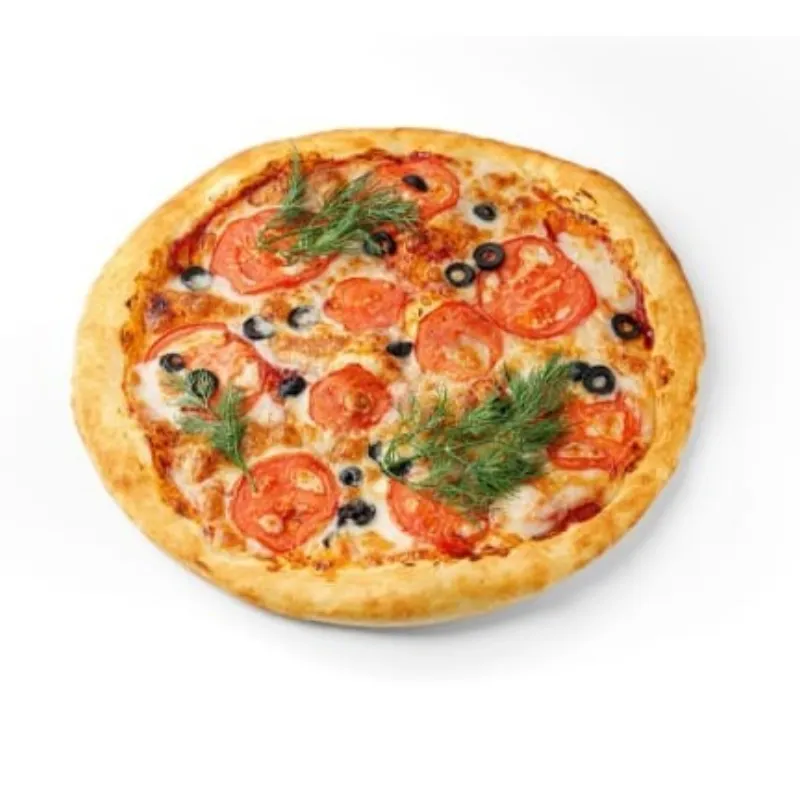 Фирменый соус, сыр Моцарелла, помидоры, маслины, Зелень