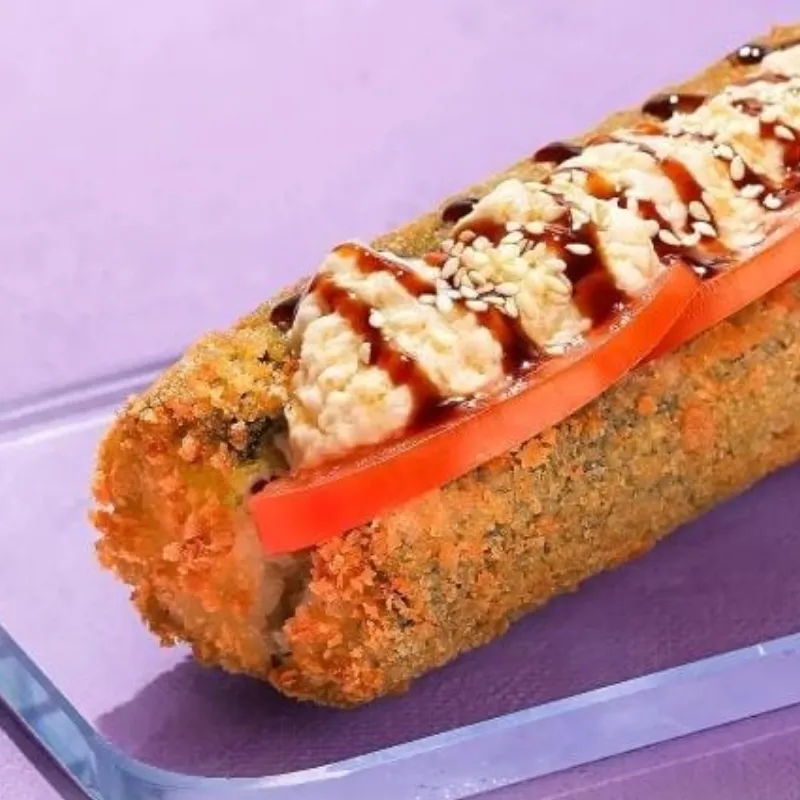Рис,Творожный сыр, Огурцы, Куриная начинка, Сыр Hochland,соус унаги, Жареный лук
