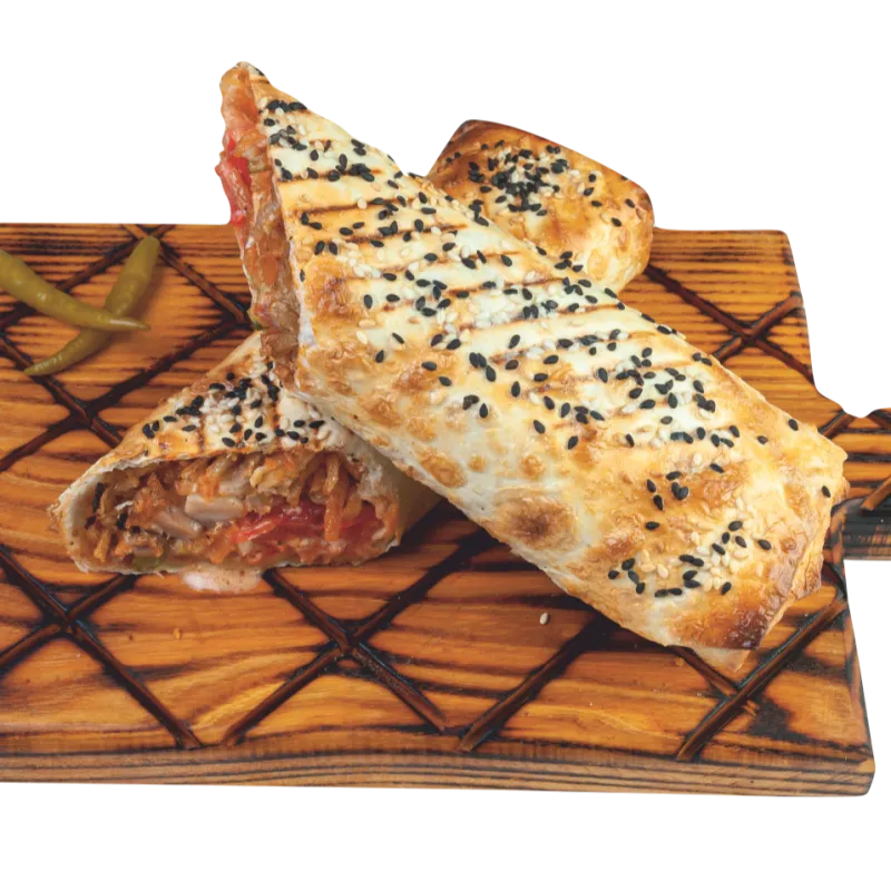 Куриное филе, перец болгарский, баклажан, помидор, грибы, морковь, сыр моцарелла, соус свит чили, специи
