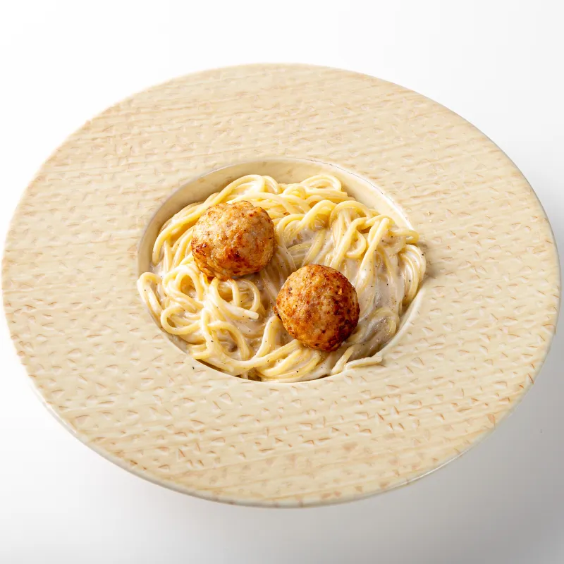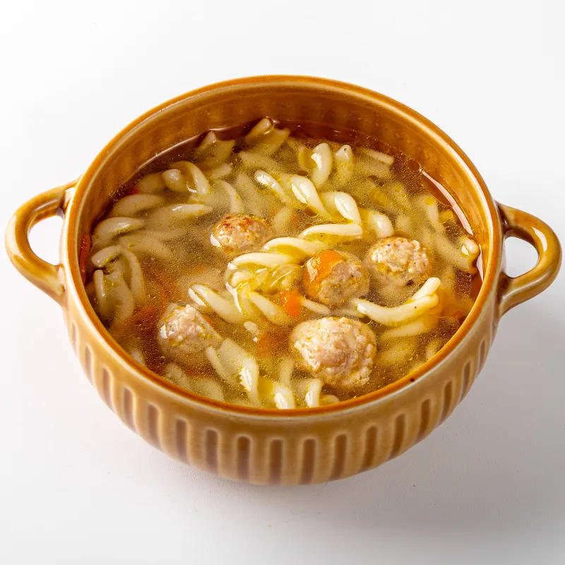 Куриные фрикадельки, макарон, яйцо перепелиное