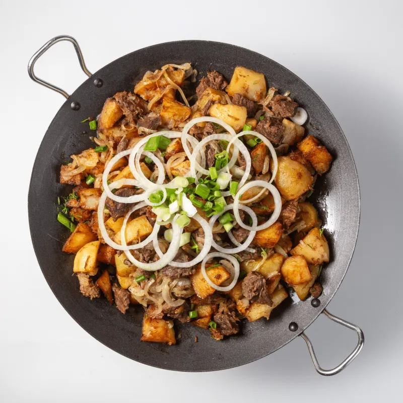 Мясо говядины, казы , картофель , тесто , лук, сорпа