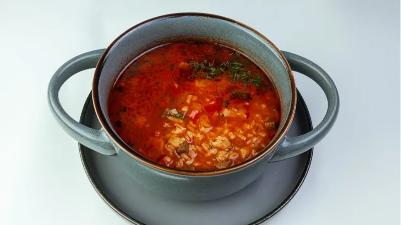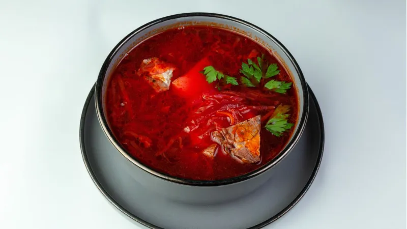 Говядина, морковь, капуста, картофель, свекла, зелень, болгарский перец, специи