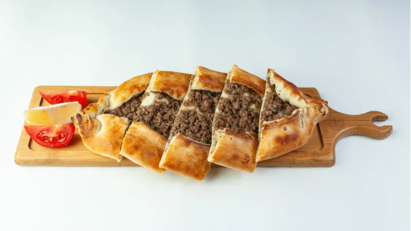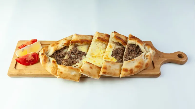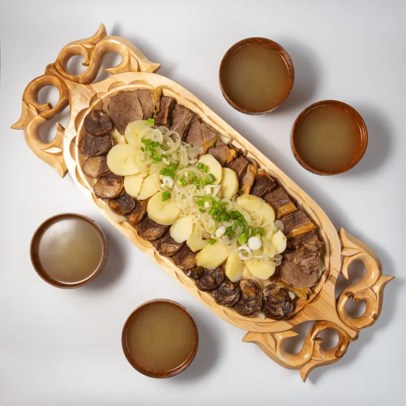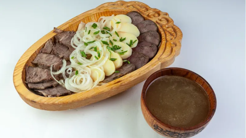 Мясо говядины, казы, картофель, тесто, лук, сорпа