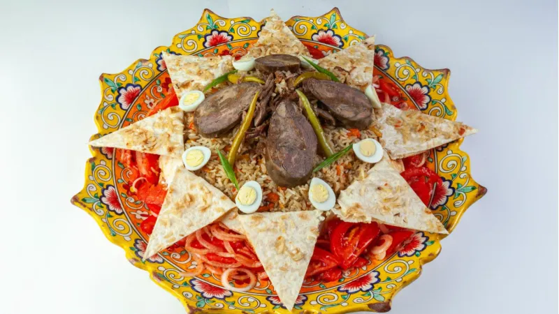 Лаваш, плов,казы, перепелиное яйцо, ачу-чук, перец халапеньо