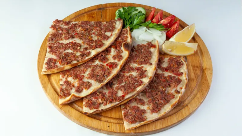 Говяжий фарш, помидор, огурцы, лук, лимон, зелень