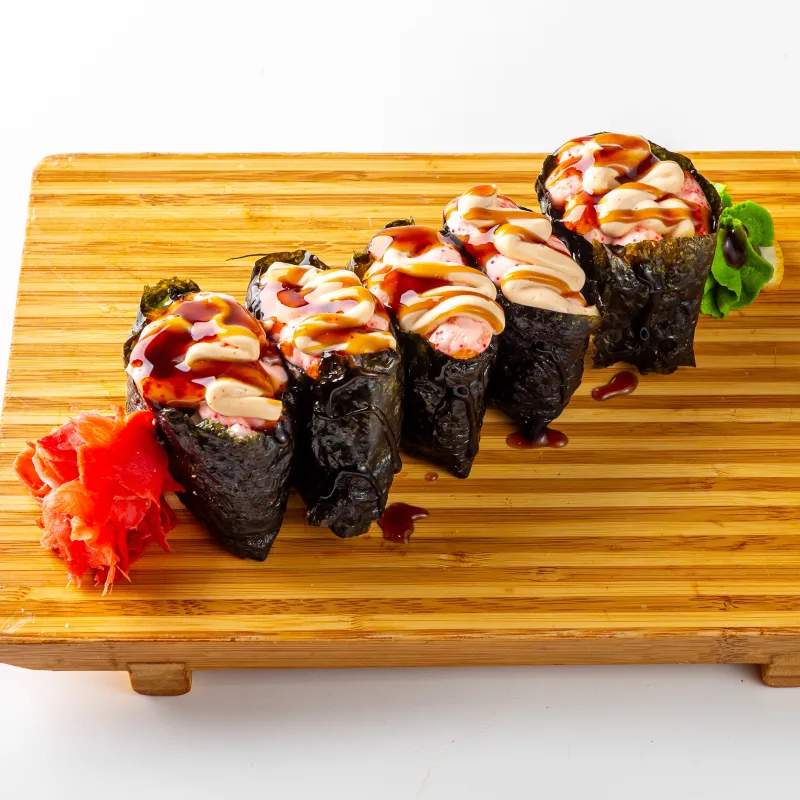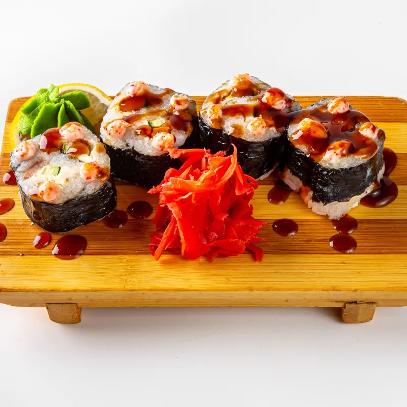Краб, нори, рис, огурец, творожный сыр, соус терияки