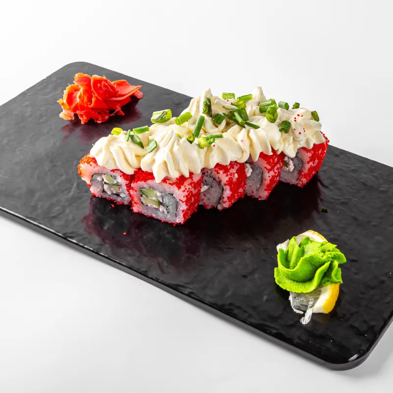 Семга, рис, нори, творожный сыр, огурец, японский майонез