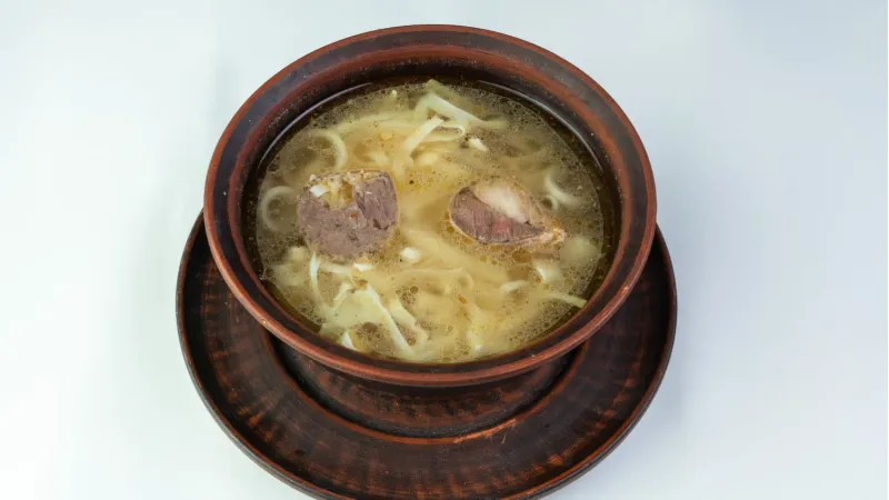 Конина, казы, лапша, лук репчатый, бульон, и специи