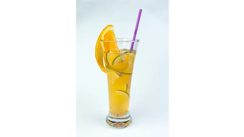(апельсиновый сок, персиковый сок, лайм, мед, гранатовый сироп