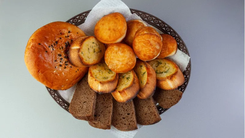 Чесночный хлеб, лепешки, бауырсаки, бородинский хлеб, чесночный хлеб