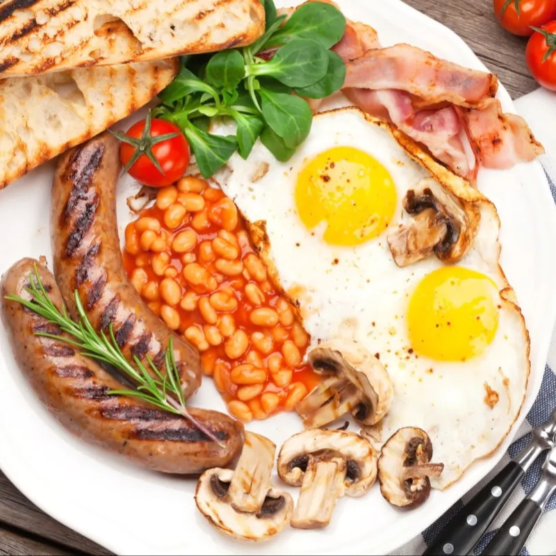 омлет из двух яиц с сыром моцарелла и помидорами, брокколи, тост, слив.масло