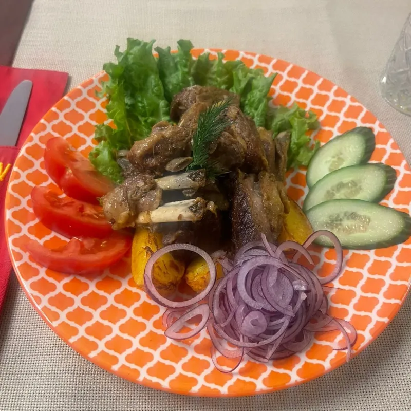 Баранина 2шт, говядина 2шт, люля кебаб 2шт, куриные крылышки 2шт, курица 2шт, овощи гриль, лаваш, соус шашлычный