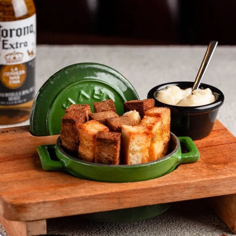 Подача с кукурузой и чесночными чипсами