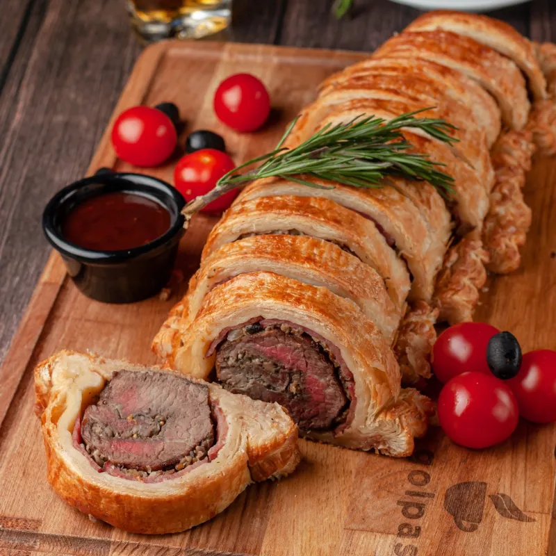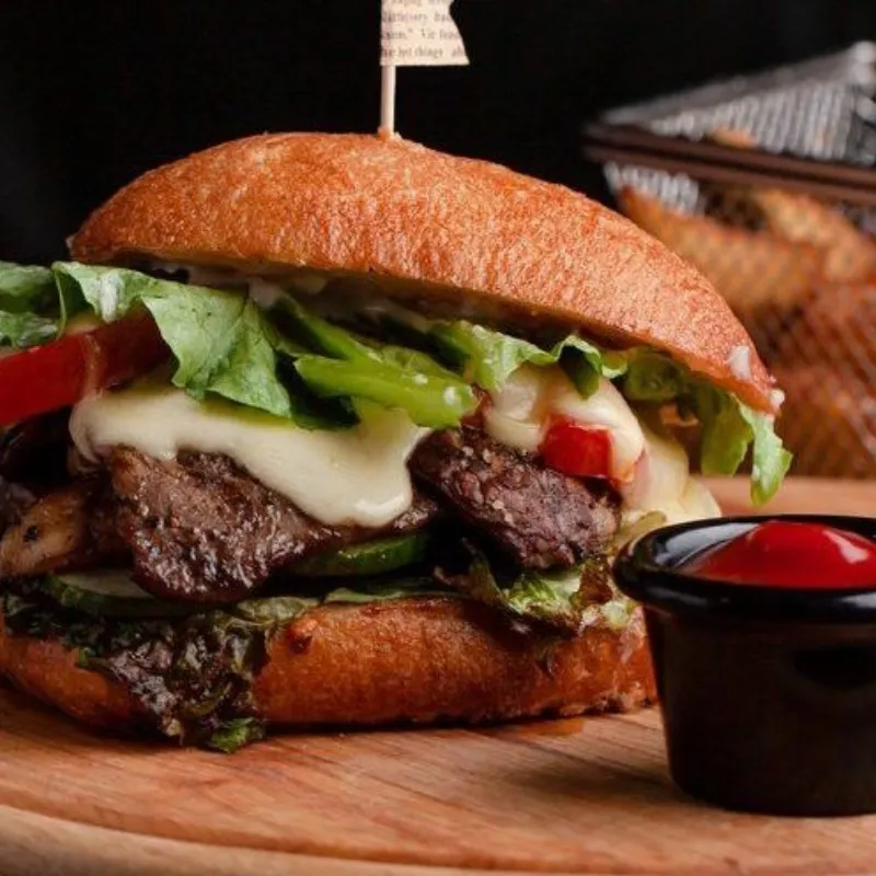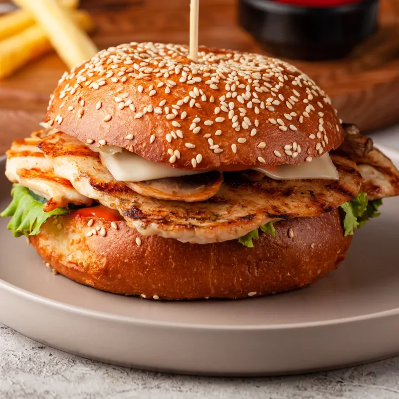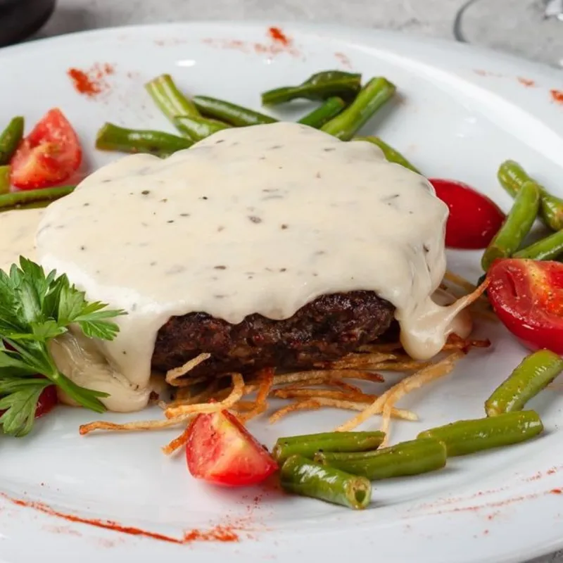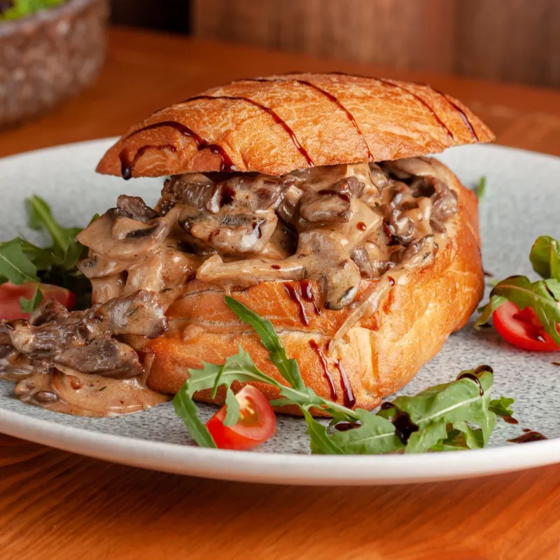 Вырезка из говядины в сливочном соусе и шампиньоны в булочке чиабатта Kazbeef