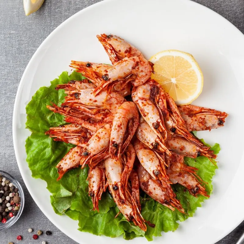 Креветки обжаренные в чесноке с коньяком и лимонным соком.