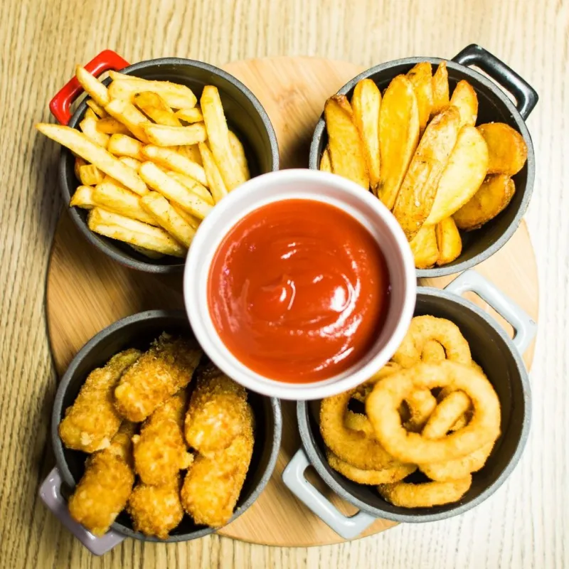 Картофельные дольки, фри, сырные палочки, луковые кольца
