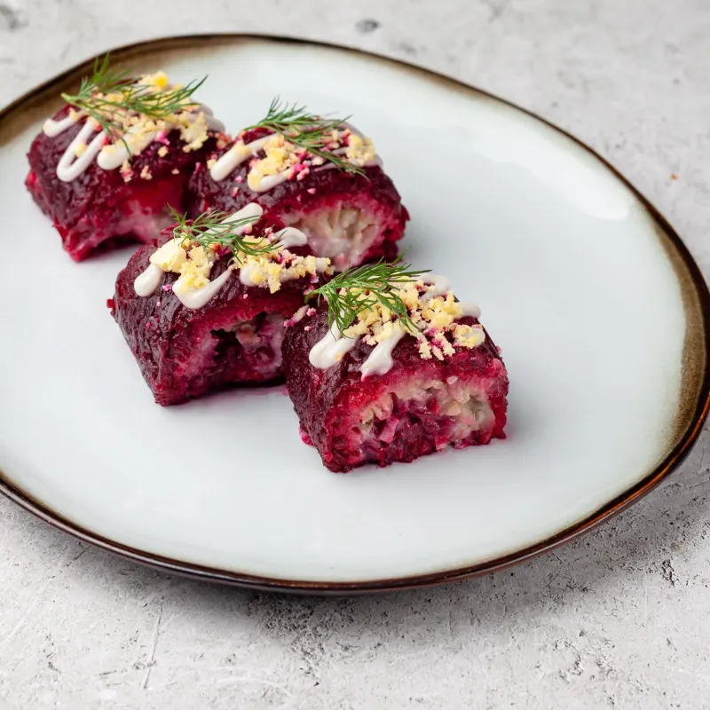 Куриные шарики, рулет с брынзой, мойва