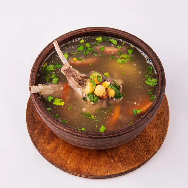 Наваристый суп из баранины с добавлением картофеля, лука и нута