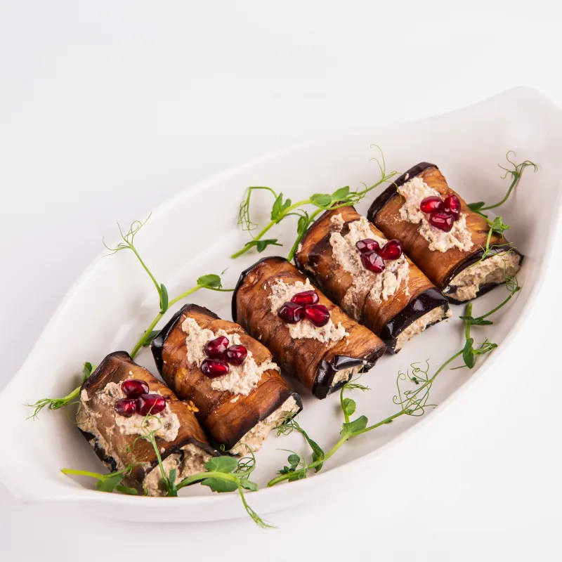 Рулетики из баклажанов с начинкой из ореховой пасты и зелени