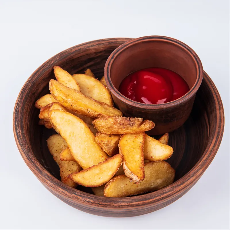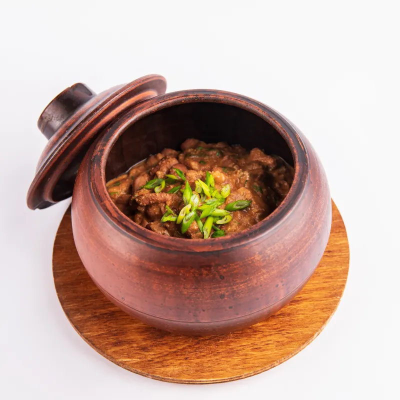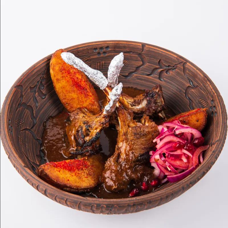 Национальное Грузинское блюдо, жаренное мясо телятины с картофелем, специями и зеленью
