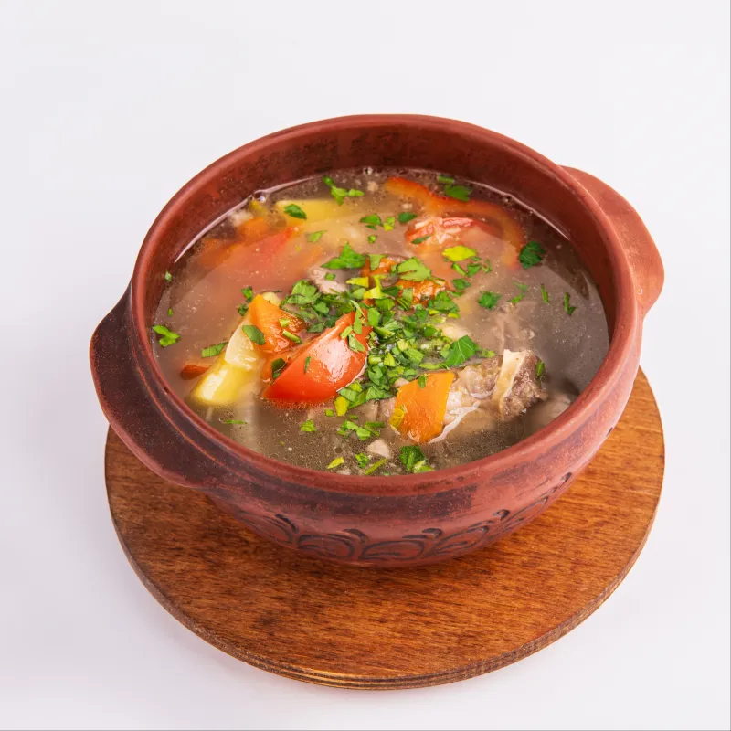 Традиционный Грузинский суп из телятины, риса и томата со специями