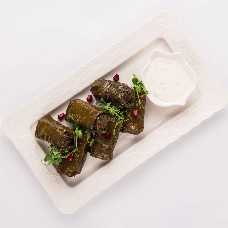 Фарш из говядины, заправленный специями и завернутый в виноградные листья