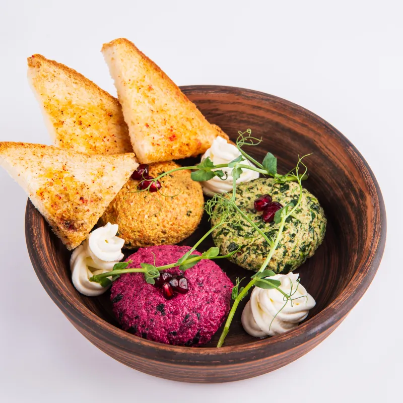 Шарики из шпината, свеклы и зелёной фасоли с добавлением грецкого ореха, специй и зеленью