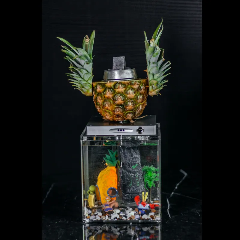 Окунитесь в веселый дух Губки Боба Квадратные Штаны и отправляйтесь в подводный рай с кальяном на Ананасе "Bikini Bottom Paradise". Испытайте слияние искусства, ностальгии и непревзойденного удовольствия от кальяна в этом необычном творении, которое отдает дань уважения культовым персонажам и приключениям Губки Боба и его друзей