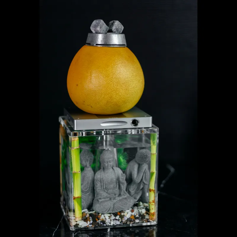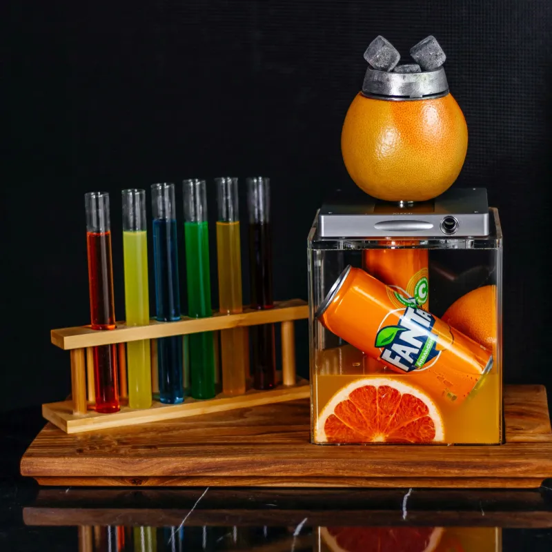 Кальян "Fanta&Fresh&Bar" с грейпфрутом передает суть острой сладости грейпфрута, наполняя ее культовым дизайном Fanta. Стеклянный корпус демонстрирует яркие оранжевые оттенки и игривые пузырьки, напоминающие только что налитый напиток Fanta. База украшена шипучими узорами, воспроизводящими шипение и волнение, которые можно найти в стакане газированного наслаждения