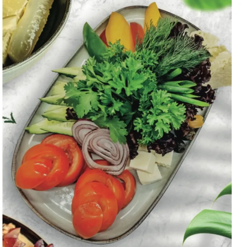 Болгарский перец, свежий помидор, свежий огурец, оливки, брынза, зелень