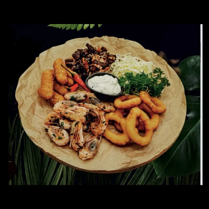 луковые кольца, сырные палочки, пивные креветки, семечки BBQ, сыр чечел, соус тар-тар.