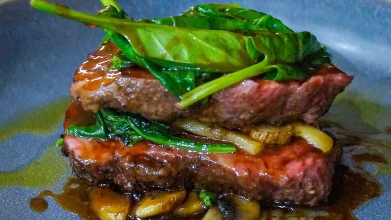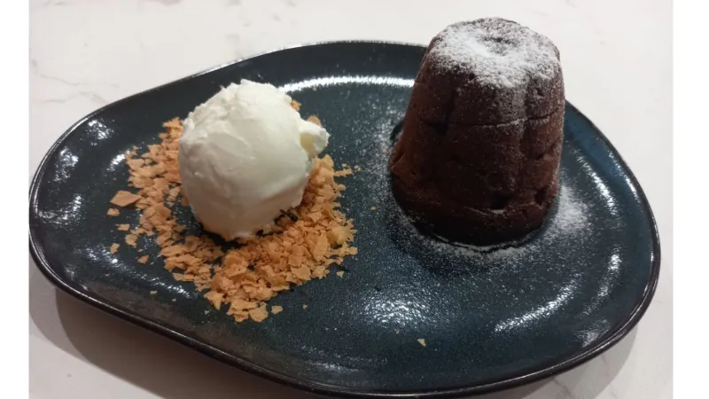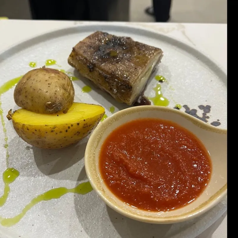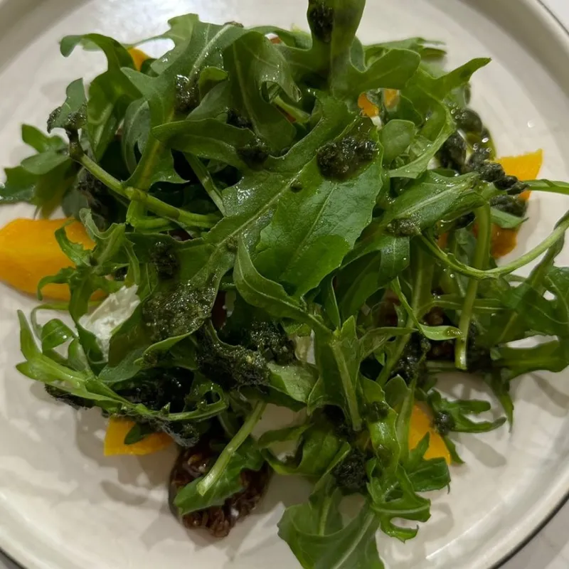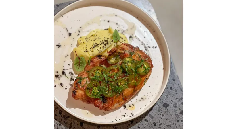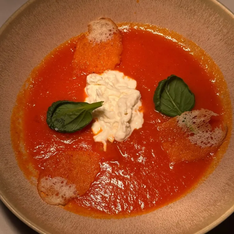 Воздушные сырники из рикотты на подложке из домашней вареной сгущенки. Клюквенный чатни добавляет выразительную кислинку,а вафельная крошка завершает образ тонким хрустом.