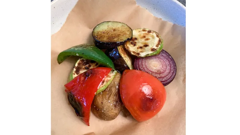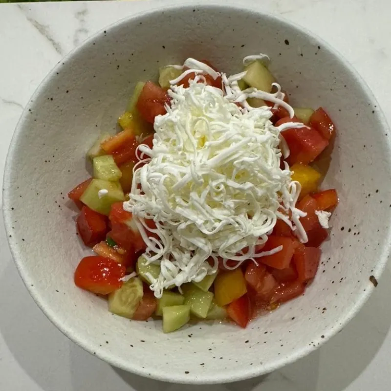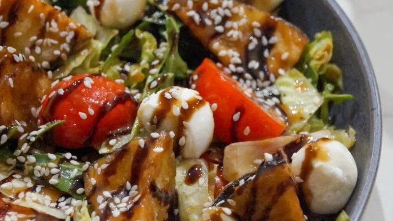 Салат с баклажанами и мини моцареллой