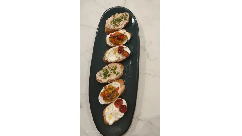 (паштет тунец, черри Конфи и базилик, печеный перец и анчоус)