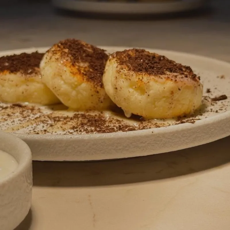 Классические сырники с золотистой корочкой. Подаются со сметаной. Воспитанные сырники - аккуратные,мягкие и без лишних слов, как положено настоящей классике.
