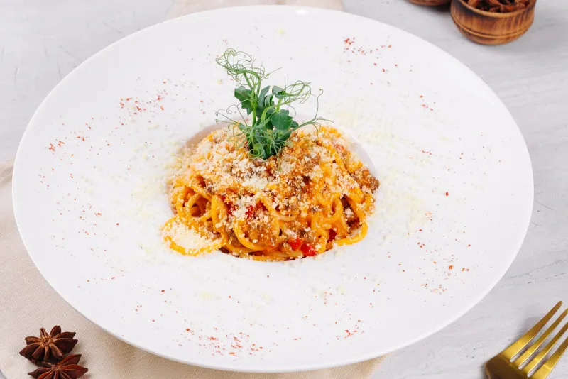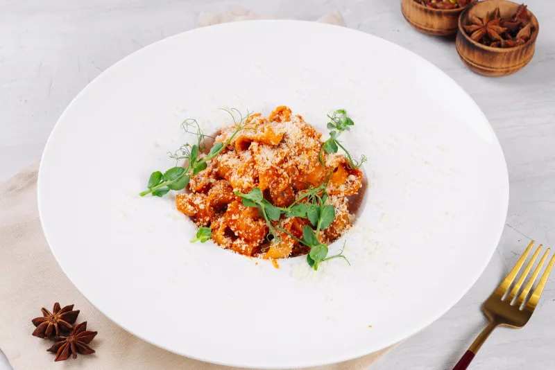 Классическая итальянская паста с мясным соусом на основе томатов, ароматных специй и сыра пармезан. Сытное и насыщенное блюдо, любимое во всём мире.