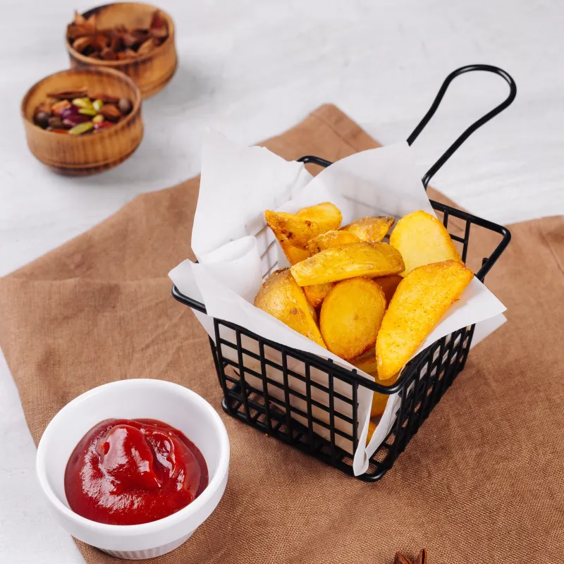 Золотистые картофельные дольки, обжаренные до хрустящей корочки и приправленные специями. Подаются с кетчупом — идеальный выбор для сытного перекуса или дополнения к основному блюду.