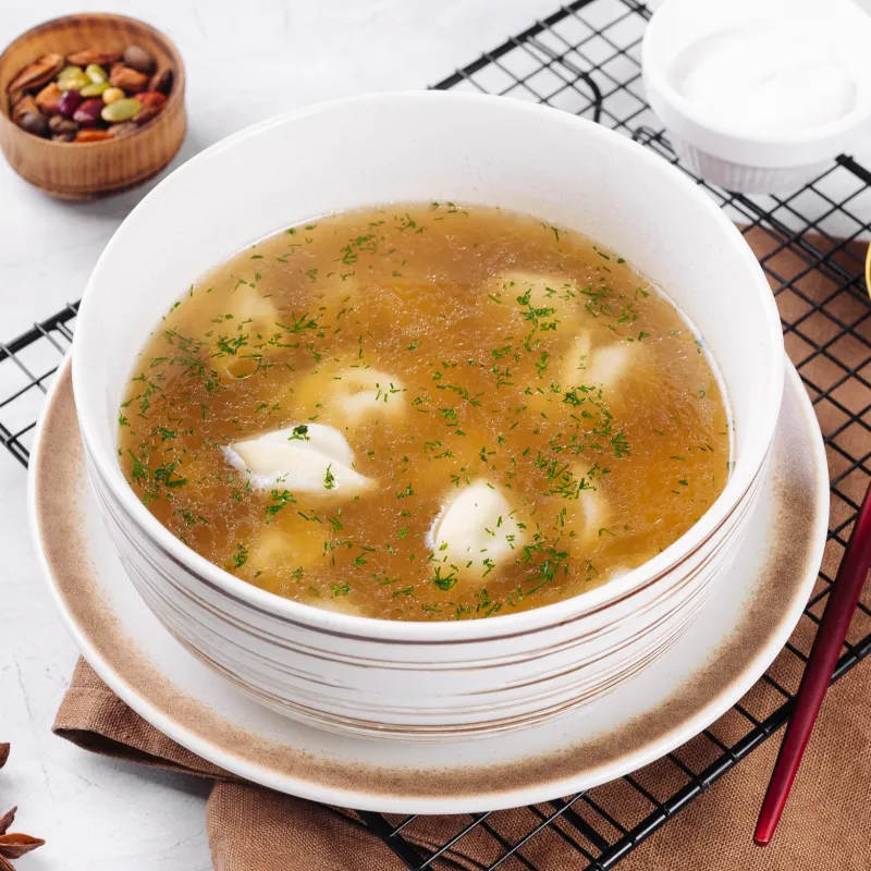 Домашний наваристый бульон с нежными пельменями и свежей зеленью. Сытный и согревающий вариант обеда — вкус детства в каждой ложке!
