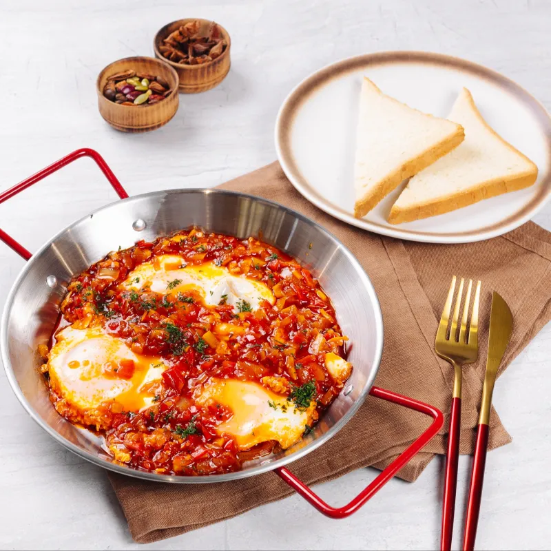 Яркое восточное блюдо из яиц, томатов, болгарского перца и специй, обжаренных до идеального баланса вкуса. Подаётся с хрустящими тостами. Идеальный завтрак с характером!
