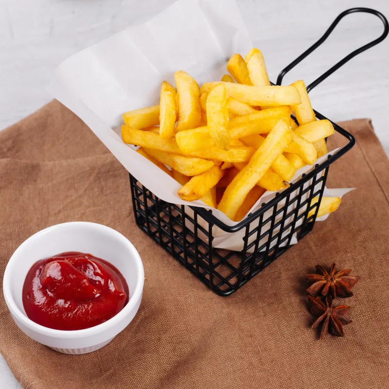 Классический картофель фри с хрустящей корочкой и мягкой серединкой. Подаётся с кетчупом — универсальный гарнир или вкусная самостоятельная закуска.