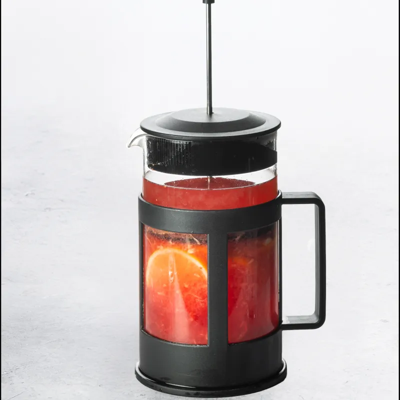 На основе черного чая с добавлением домашнего пюре из ягод, апельсина, лимона и мёда.