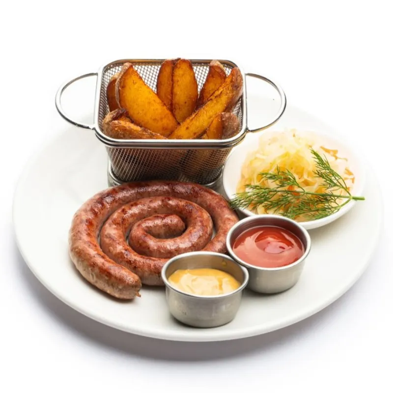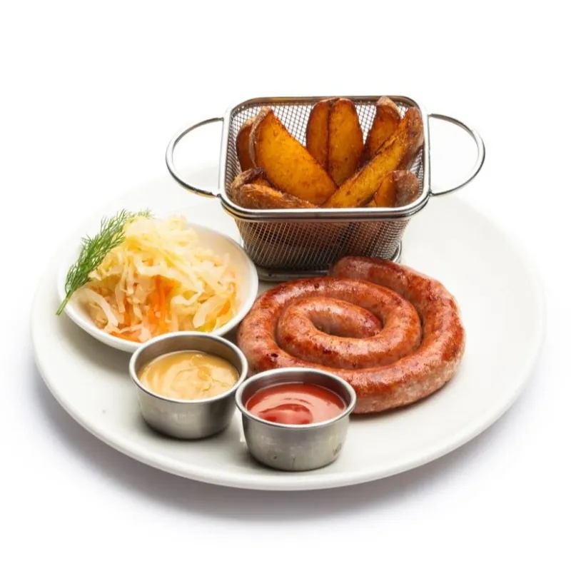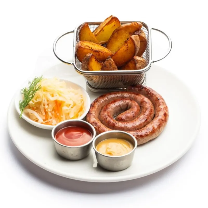 (3 вида колбасок, квашеная капуста, картофельные дольки)