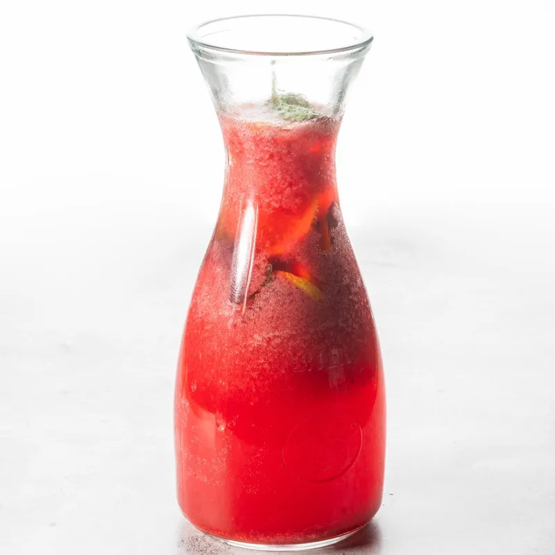 На основе домашнего ягодного пюре с добавлением апельсина, лимона и мяты.