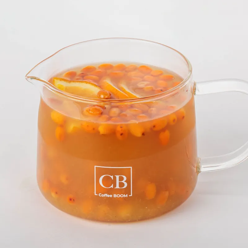 На основе черного чай с добавлением мёда, домашнего облепихового пюре, восточных специй, лимона, лайма, апельсина и мяты.