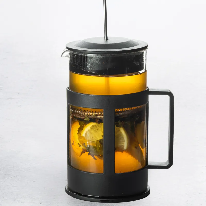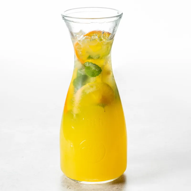 На основе чёрного чая с добавлением домашнего цитрусового пюре, мёда, апельсина, лимона, лайма и мяты.